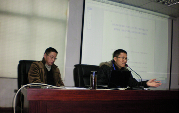 都江堰市食品藥品管理局楊衛(wèi)科長正在主持會議